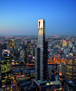 – Tham quan bên trong tòa nhà Eureka Skydeck – Tháp Eureka là một tòa nhà chọc trời dùng làm khu căn hộ nằm tại Bờ Nam của Melbourne bên dòng sông Yarra. Trên đỉnh tòa tháp là màu vàng tượng trưng cho những thỏi vàng từ khu mỏ còn các dải sọc màu đỏ thể hiện dòng máu đang chảy. Màu chủ đạo của tòa tháp là màu lam và màu trắng, tượng trưng cho lá cờ Eureka biểu tượng ngày nay.