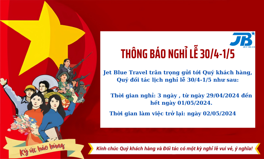 Trong thời gian nghỉ Lễ, Jet Blue Việt Nam đã bố trí nhân sự trực đảm bảo hoạt động phối hợp, hỗ trợ sử lý thông tin đặt vé , mọi yêu cầu vui lòng liên hệ với các bộ phận chuyên môn của Jet Blue Vietnam qua :
